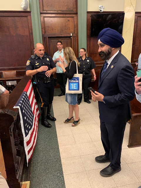 So then, why does incumbent Second Ward candidate Councilwoman Fisher think it's okay to sashay into City Hall and attend a public meeting carrying campaign paraphernalia?